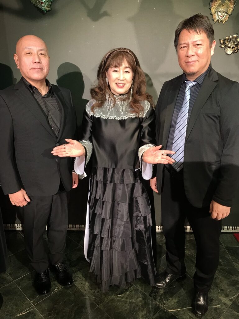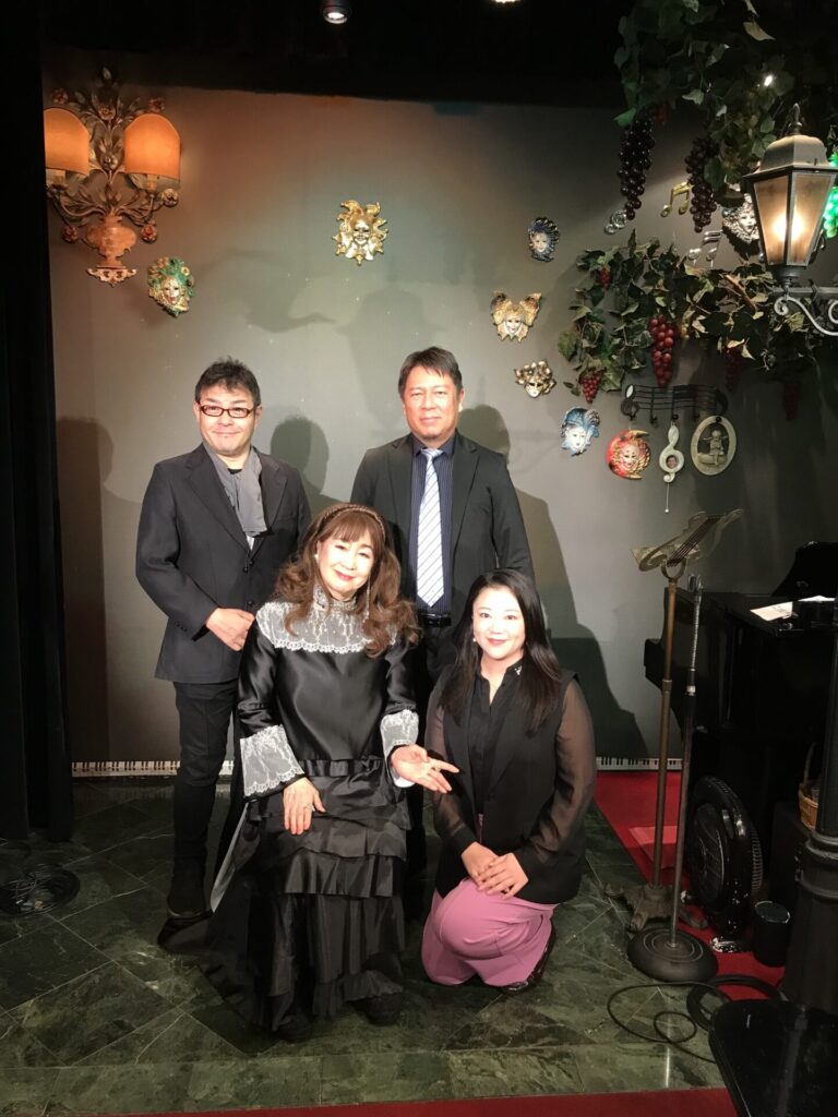 ライブ後には、残られた皆さまと写真撮影の時間を持つことができました。また、歌手の但馬隆久さんが駆けつけてくださり、麻子さん、アルベルト田中さん、スタッフの原辺さんとともに、温かい記念の一枚となりました。